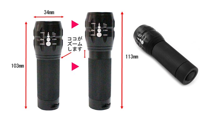 ズーム機能搭載で遠くまで明るく照らすことが可能です。