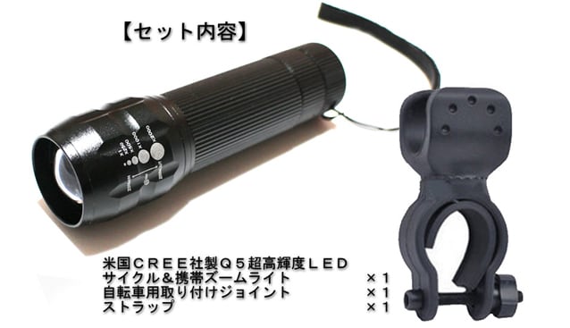 - 米国CREE社製Q5超高輝度LEDサイクル&携帯ズームライト