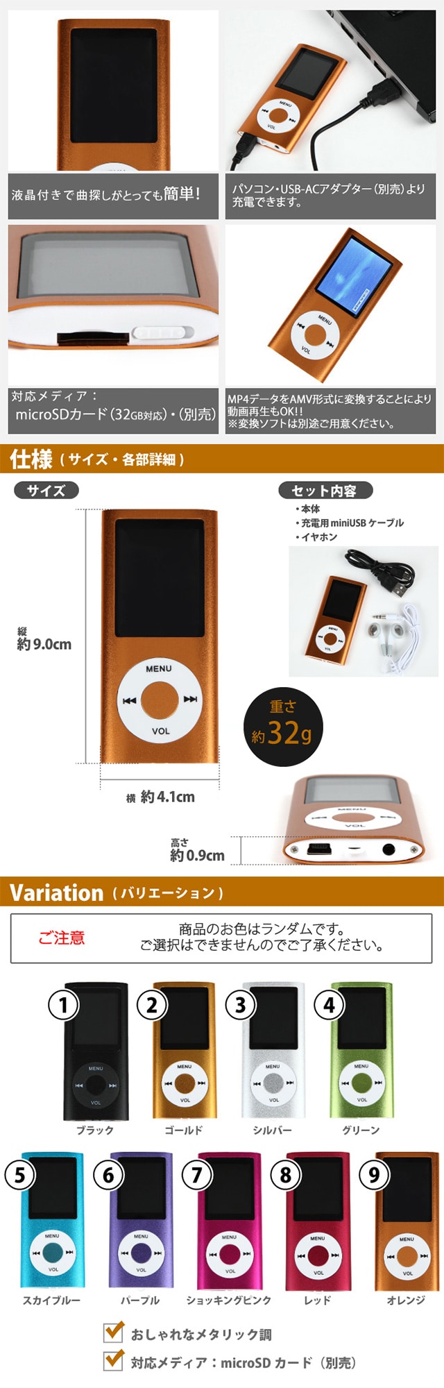・MP4データをAMV形式に変換することにより動画再生もOK! ※変換ソフトは別途ご用意ください。