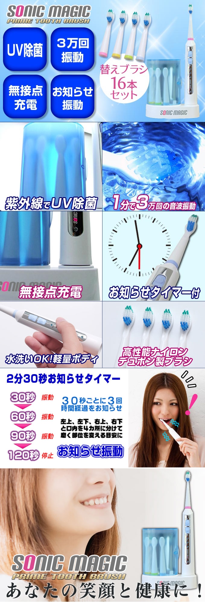 ソニックマジック 替えブラシ計16本セット | 毎分3万回音波振動&UV除菌付き♪音波電動歯ブラシ[ソニックマジック]替えブラシ計16本の特別セット