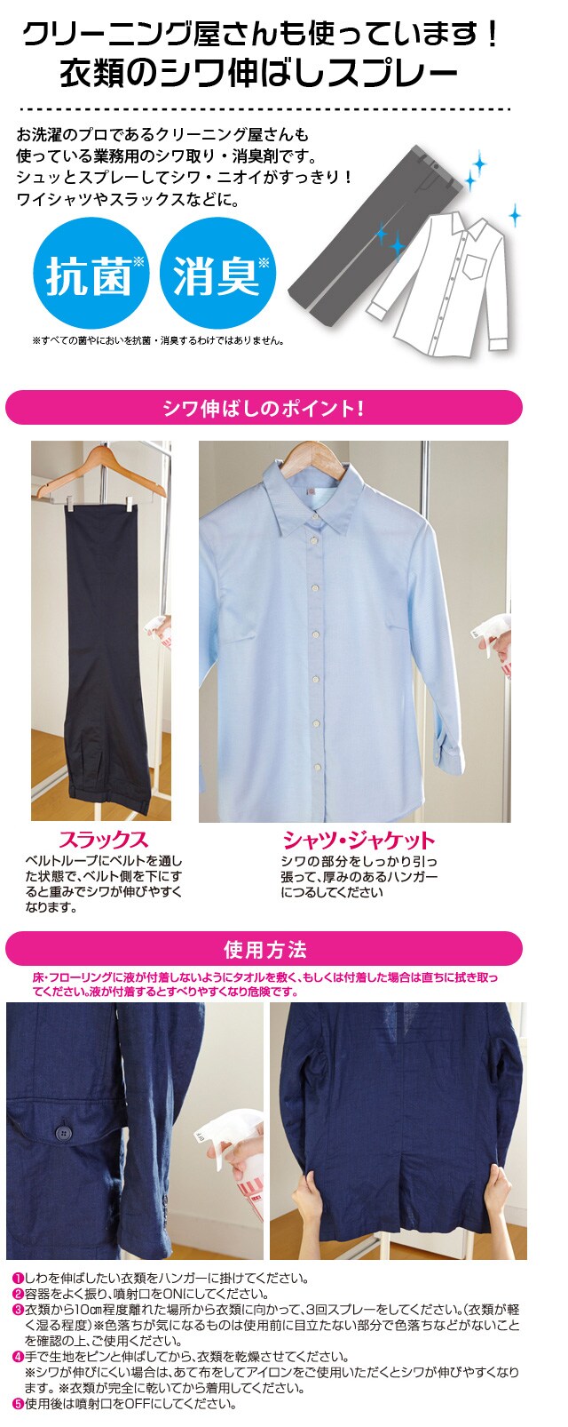 シュッとスプレーしてシワ・ニオイがすっきり。