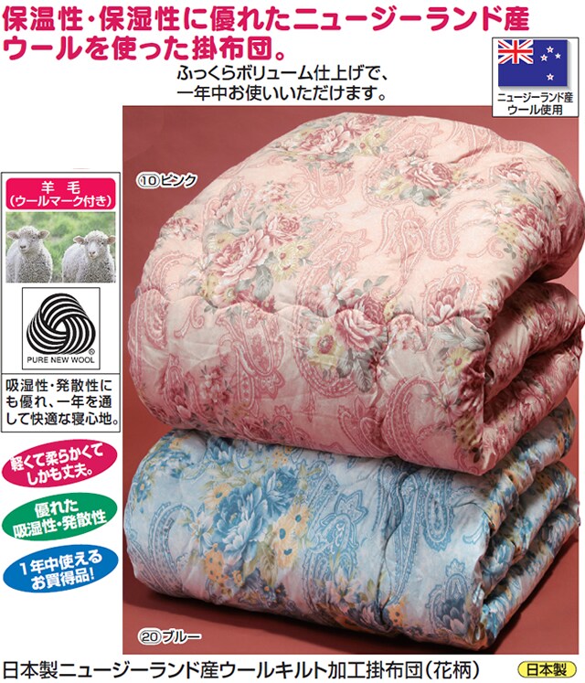 仕様:保温性・保湿性に優れたニュージーランド産羊毛を使用した掛布団。吸湿・発散性にも優れています。