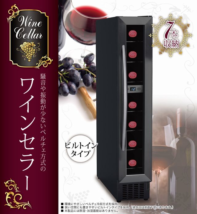 "ワインセラーでは珍しい7本収納の超コンパクトタイプ”