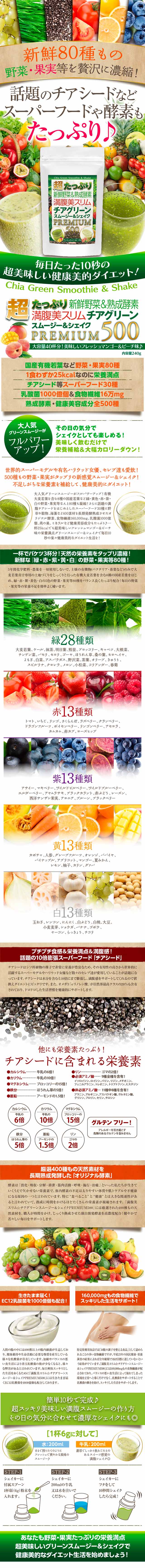 - 超タップリ新鮮野菜&熟成酵素☆満腹美スリム☆チアグリーンスムージー&シェイクPREMIUM500【シェイカー無】