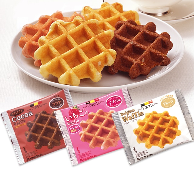 - マネケン ベルギーワッフル詰め合わせ 60個(プレーン24個、ココア18個、いちご18個)