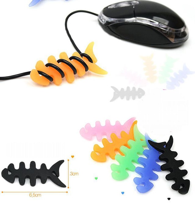 【イヤホン・ヘッドホンコード巻き取り収納ホルダー 魚の骨 10個セット】絡まるコードをすっきり収納!! ※カラーランダム