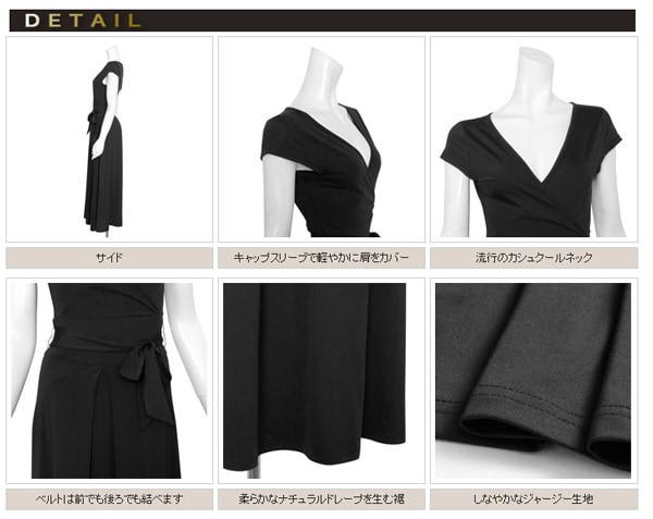 - 【MARTHA】カシュクールジャージーマキシワンピース / 16077BK / ブラック / LL
