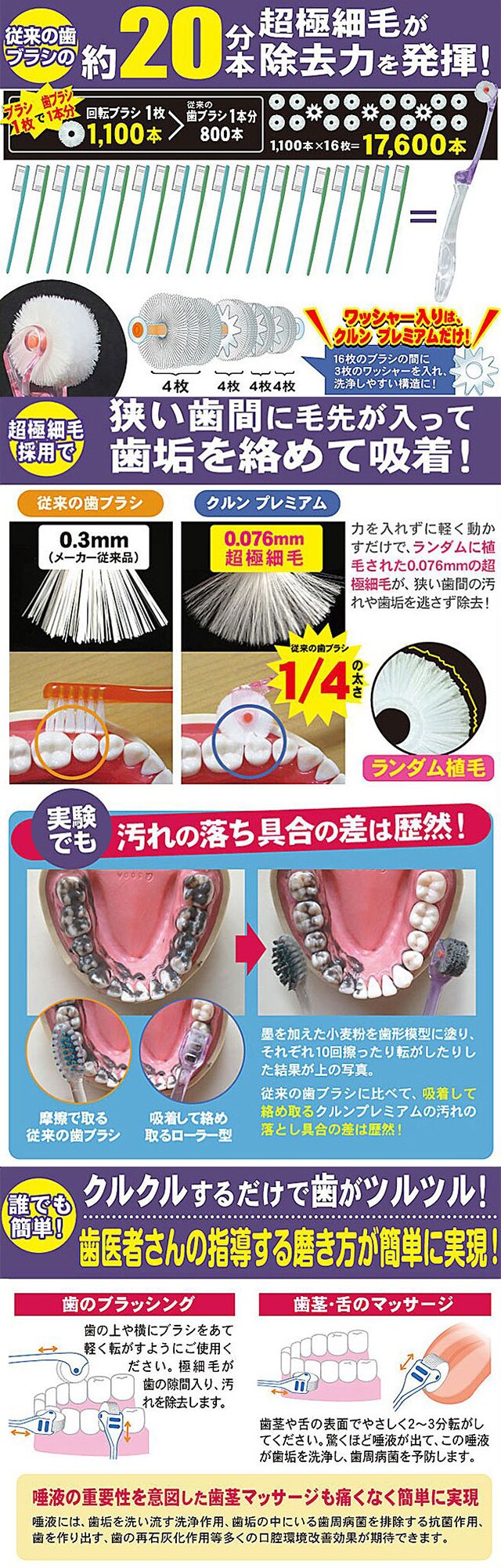 歯周ケアロールブラシ クルンプレミアム 6本セット | 日本製!!吸着するように絡め取る回転歯ブラシ!!