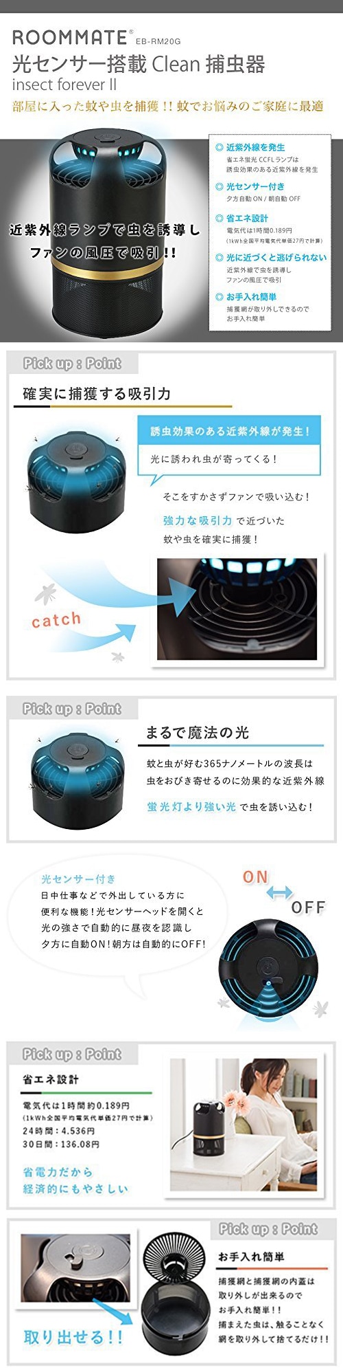 - ROOMMATE 光センサー搭載 Clean 捕虫器insect forever II EB-RM20G