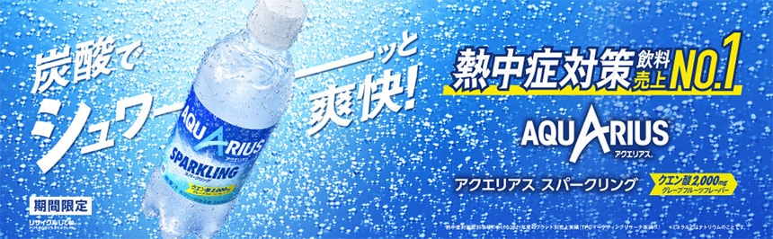 夏の運動時やその前後、家事や軽い運動時など、日常のリフレッシュや水分補給に『アクエリアス スパークリング』をお試しください。