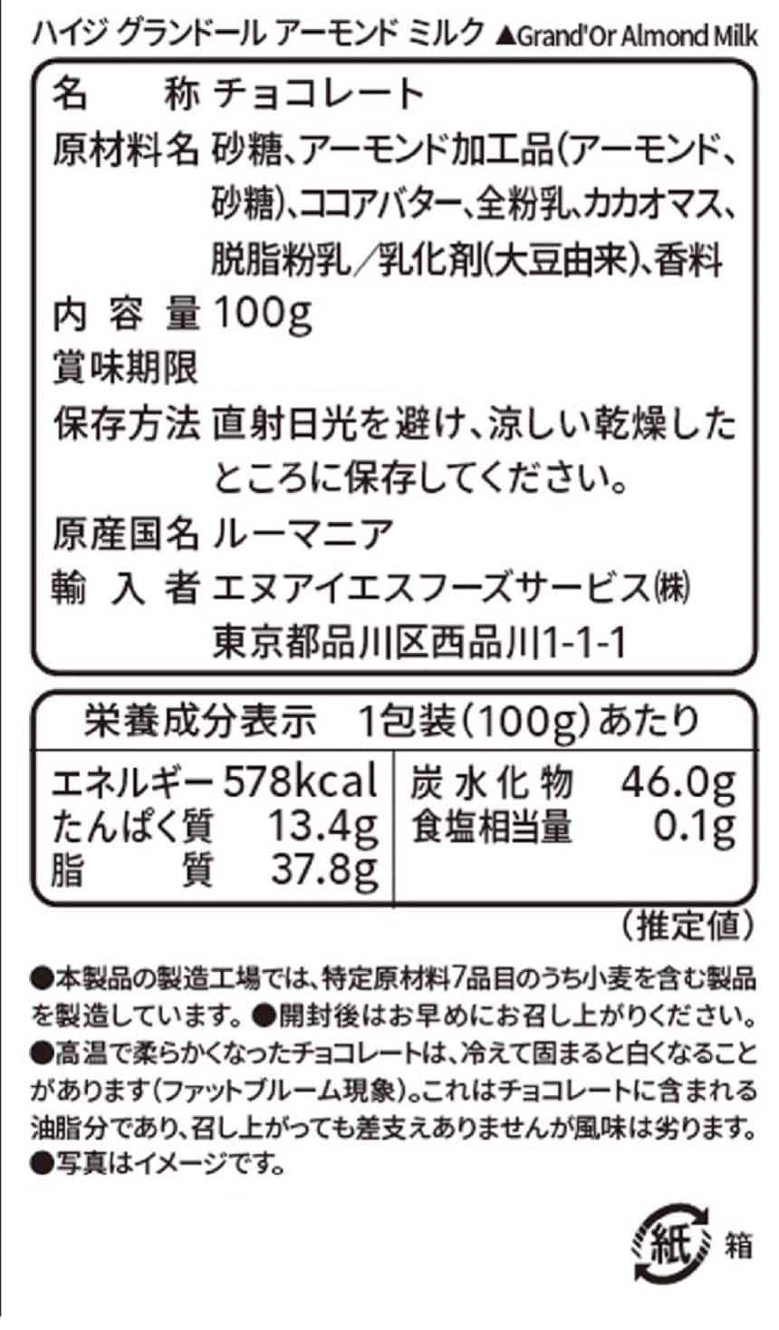 - ・ハイジ グランドール アーモンド ミルク 100g×5個(賞味期限:2023/09/11)