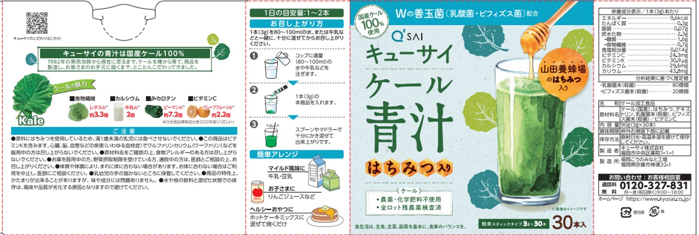 [20個]キューサイ ケール青汁 はちみつ入り プラス善玉菌 30本入 | ケール×ダブルの善玉菌でスッキリ習慣!