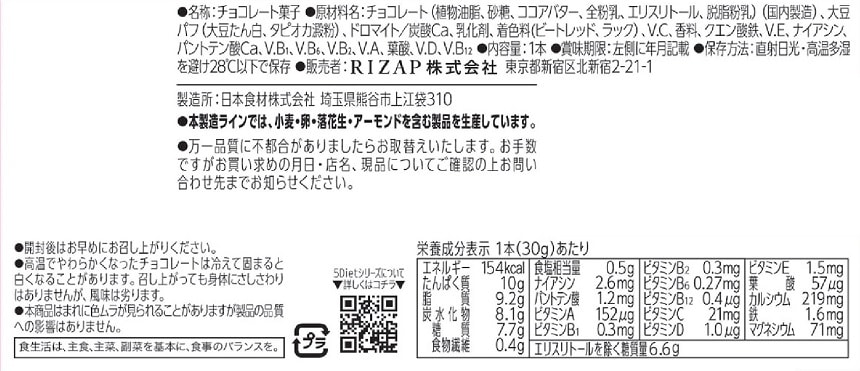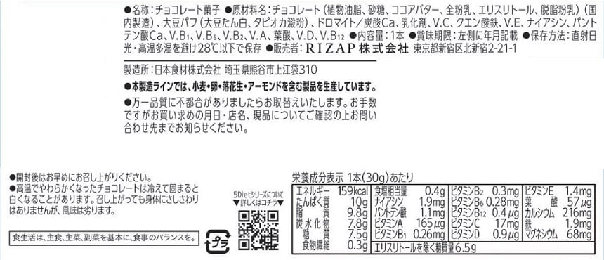 【5Dietダイエットサポートバー ホワイトチョコ】乳成分・大豆 ※本品製造ラインでは、小麦・卵・落花生・アーモンドを含む製品を生産しています。