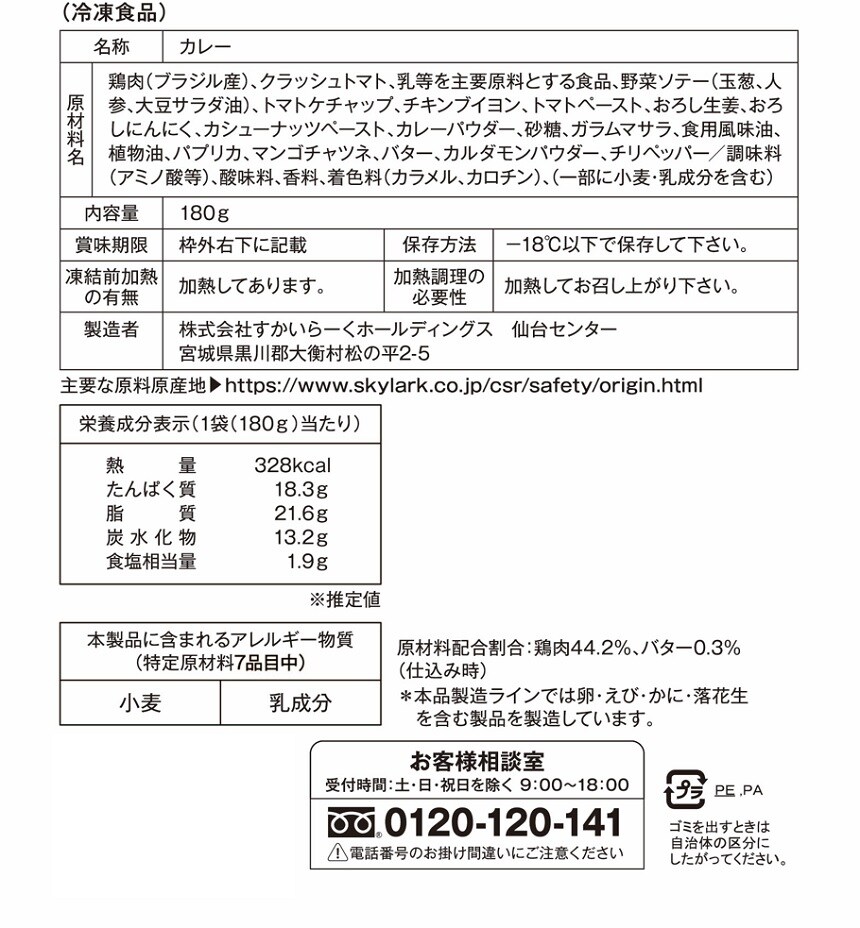 [20食]すらいらーくホールディングス ジョナサン バターチキンカレー 180g | 10種のスパイスを使ったほんのりスパイシーでマイルドなカレー