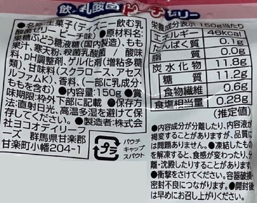- ディズニー 飲む乳酸菌ゼリー ピーチ 150g