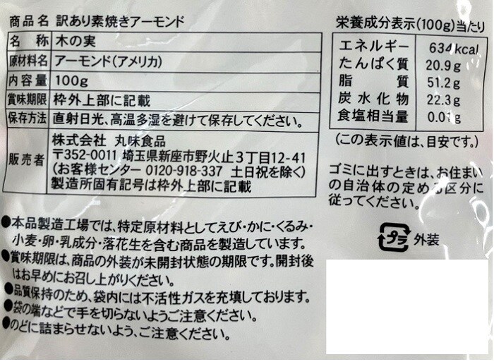[2種計40袋]丸味食品 訳ありアーモンド 100g / 訳ありくるみ 100g | 見た目のバラつきなどはございますが、味に自身のあるナッツです!