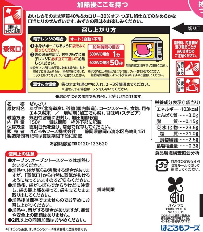 - はごろも茶寮 ぜんざい糖質オフ 150g