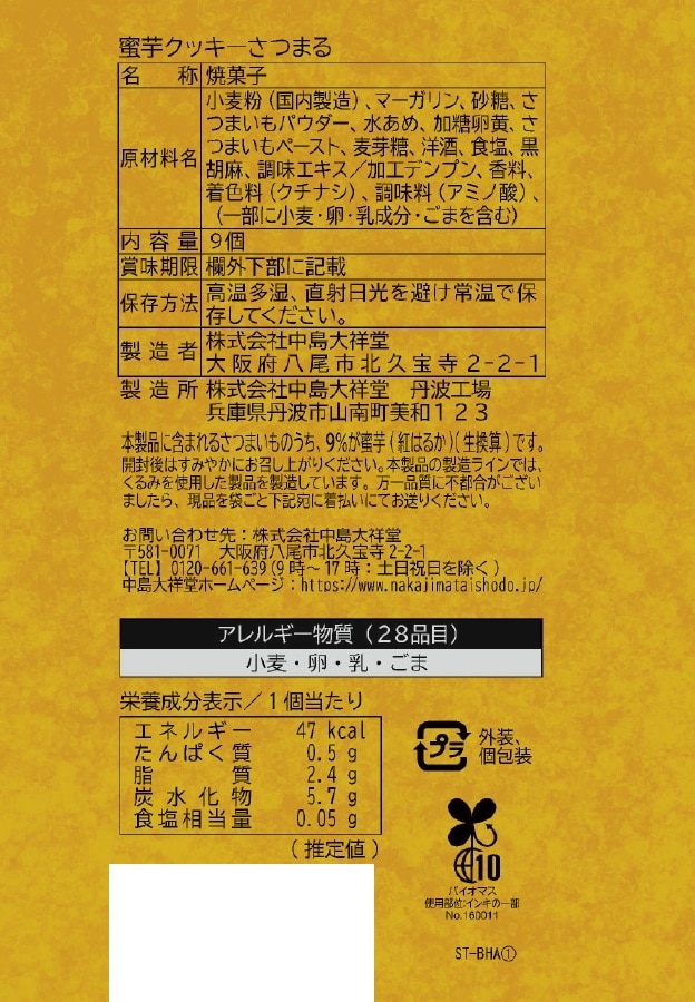 - 蜜芋クッキーさつまる 9個入
