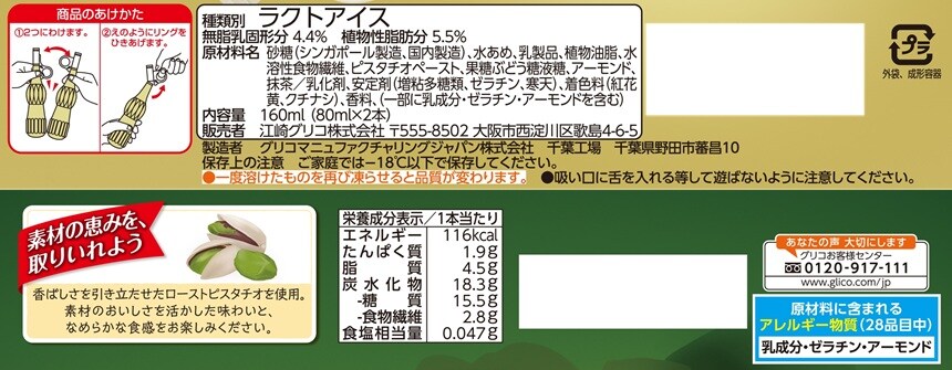 [40個]江崎グリコ パピコ 大人の濃厚ジェラート ピスタチオ 160ml | ローストピスタチオを使用した、風味豊かで濃厚な味わいです。