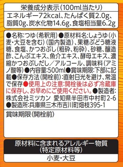 - ミツカン 追いがつおつゆ 2倍 500ml