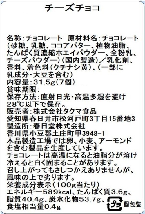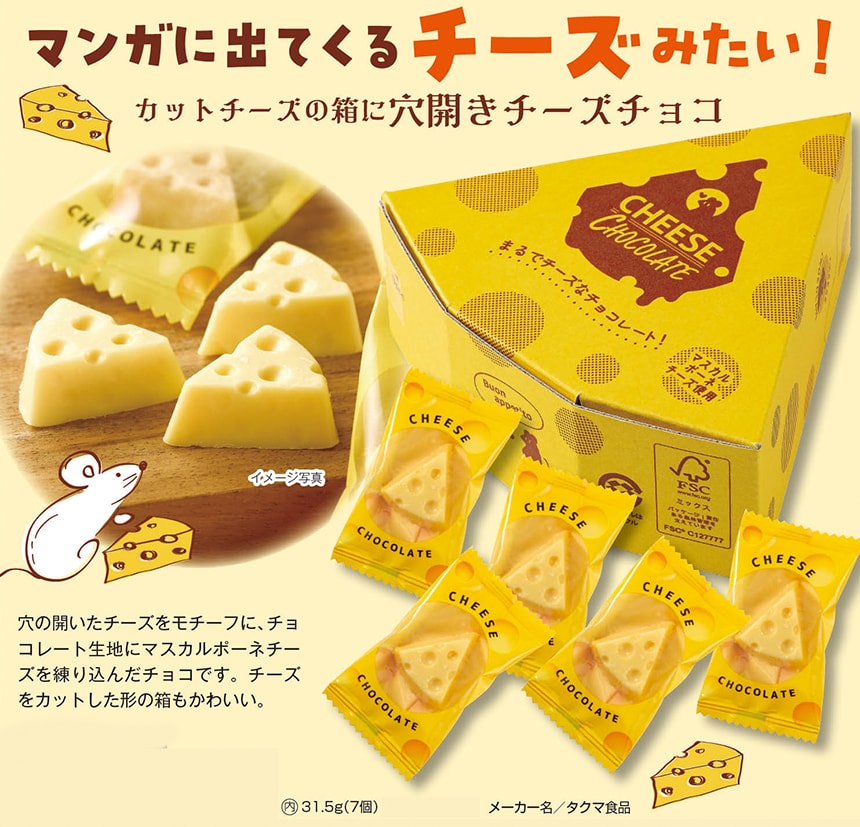 [40箱]タクマ食品 チーズチョコ 31.5g(7個入) | マンガに出てくるチーズみたい!カットチーズの箱に穴開きチーズチョコ