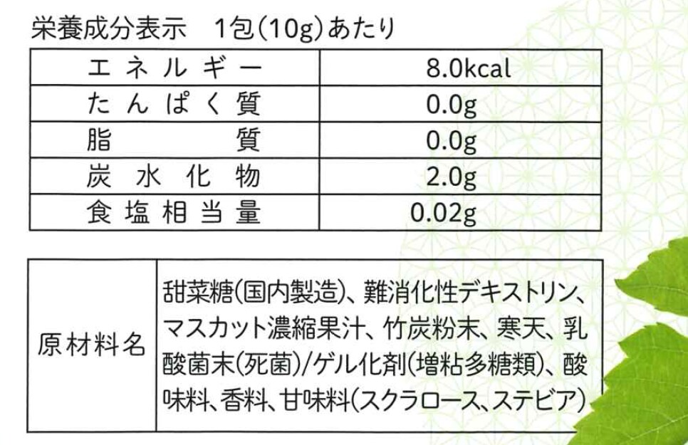 竹林保護の為に伐採された京都嵯峨野の京真竹のみを焼成し食用パウダーに加工しゼリーに配合。