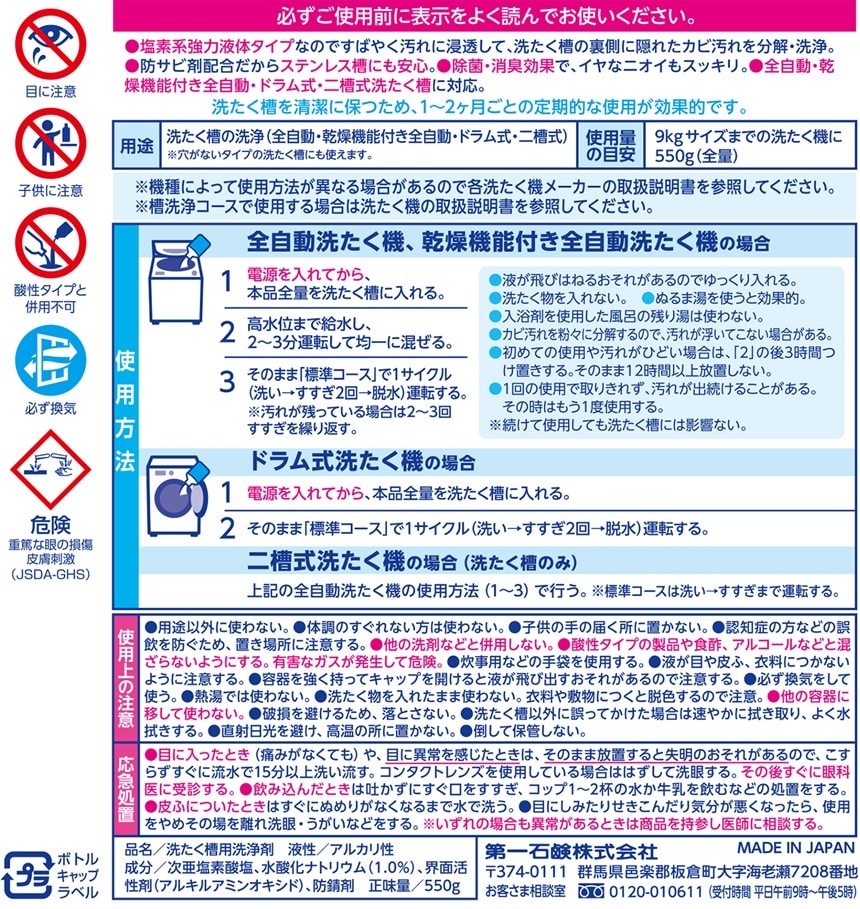 [20個]第一石鹸 ランドリークラブ 液体洗濯槽クリーナー 550g | 防錆剤配合だからステンレス槽にも安心して使えます
