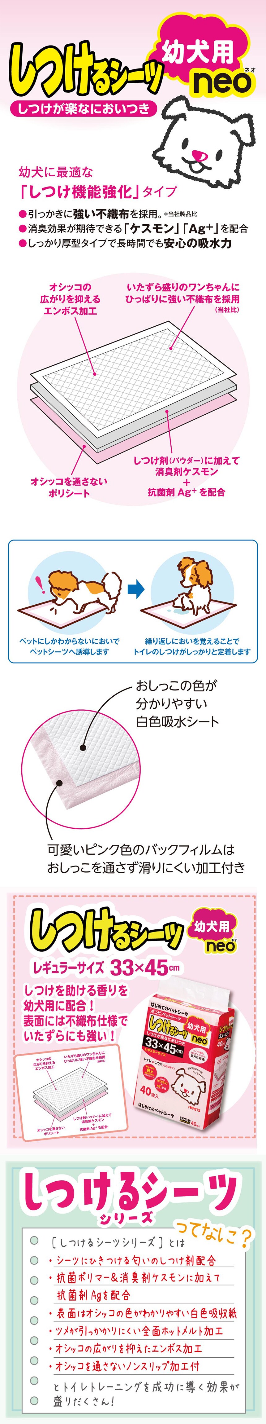 ・しつけるシーツ幼犬用neoは、幼犬に最適なしつけ機能強化しました。