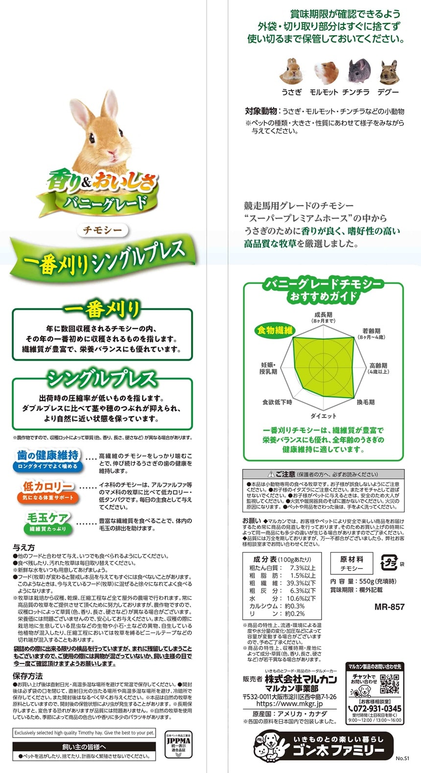 [4個] マルカン バニーグレード チモシー 550g | 最高級グレードのチモシーの中からさらに厳選された牧草
