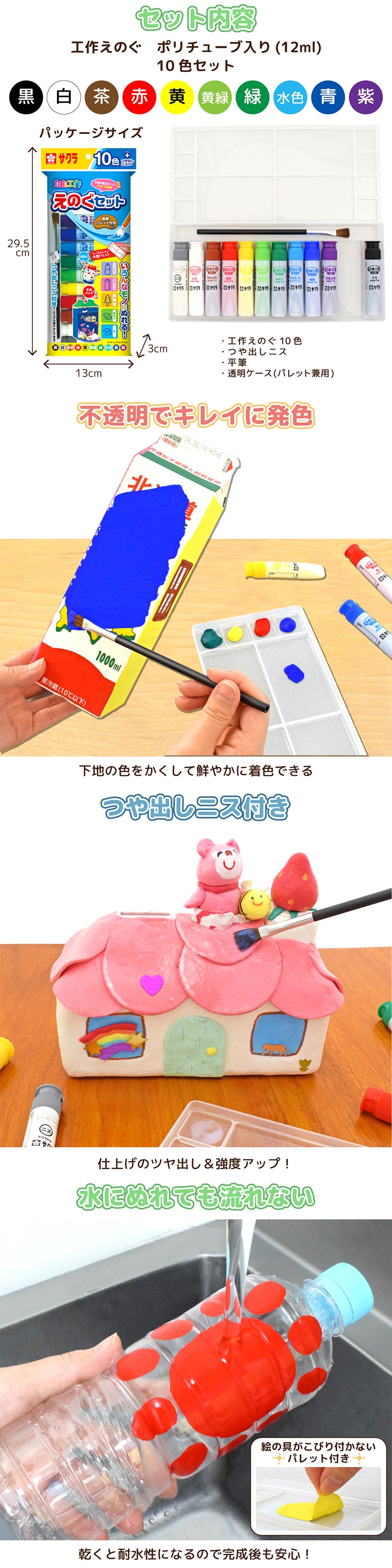 [3セット]サクラクレパスさあ工作 えのぐセットA 10色入り | 木・紙粘土・牛乳パック・ペットボトルなどいろんなものに描ける工作えのぐセット