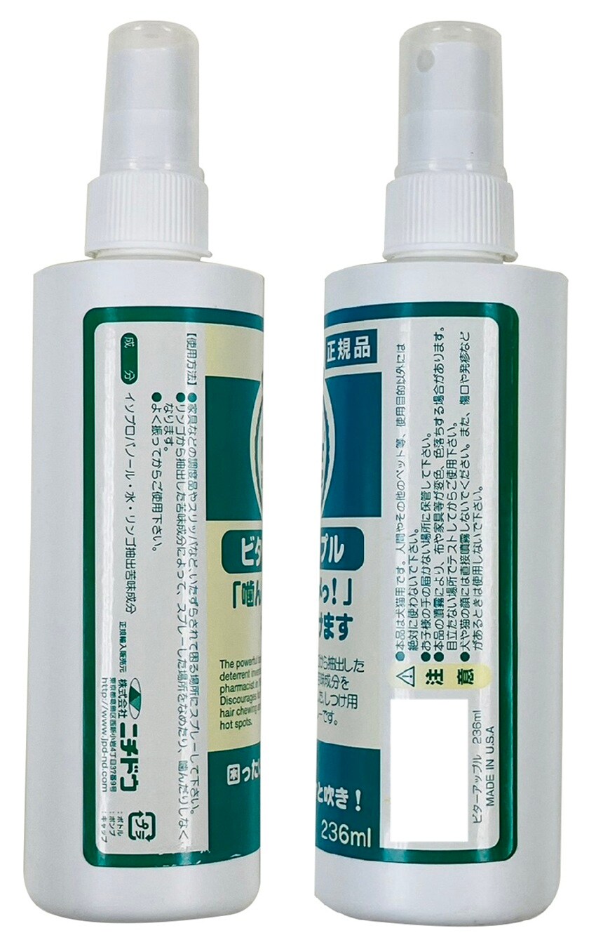 リンゴから抽出した天然苦み成分を利用した、犬用しつけスプレーです。