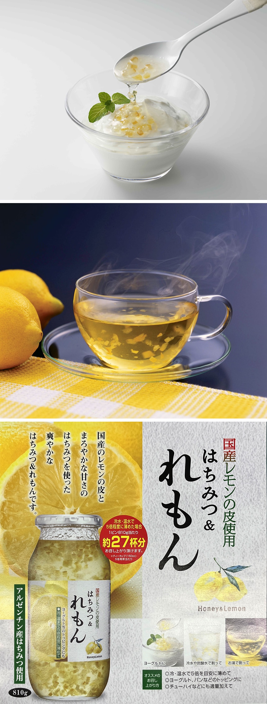 ● 国産レモンの皮とまろやかな甘さのはちみつを使った爽やかなはちみつ&れもんです。