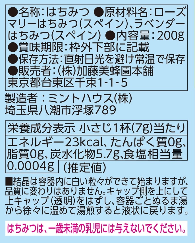 - ローズマリー&ラベンダー純粋はちみつ 200g
