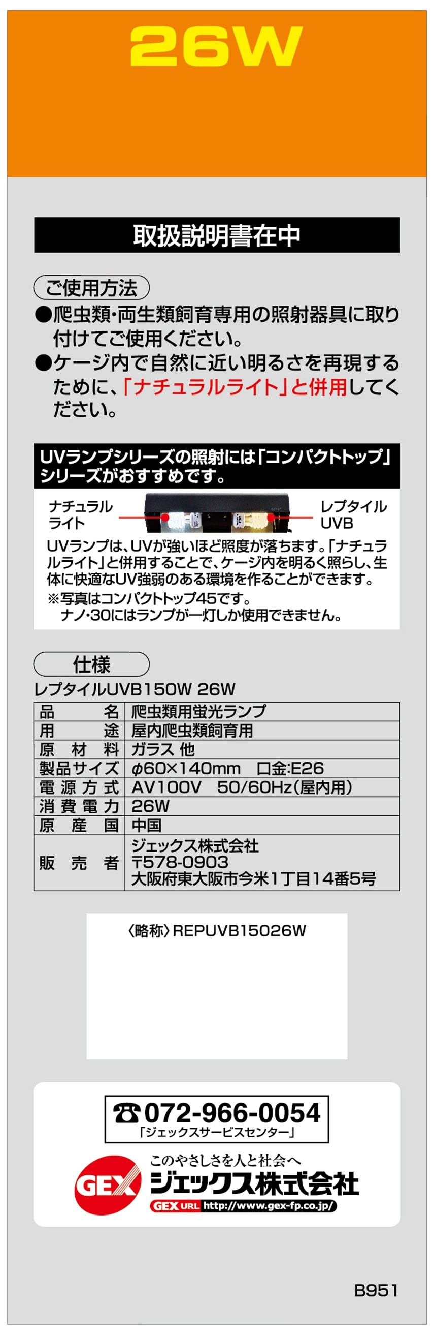 - [1個]ジェックス レプタイルUVB150 26W PT2189 1個 | 砂漠・サバンナに棲息する爬虫類に最適