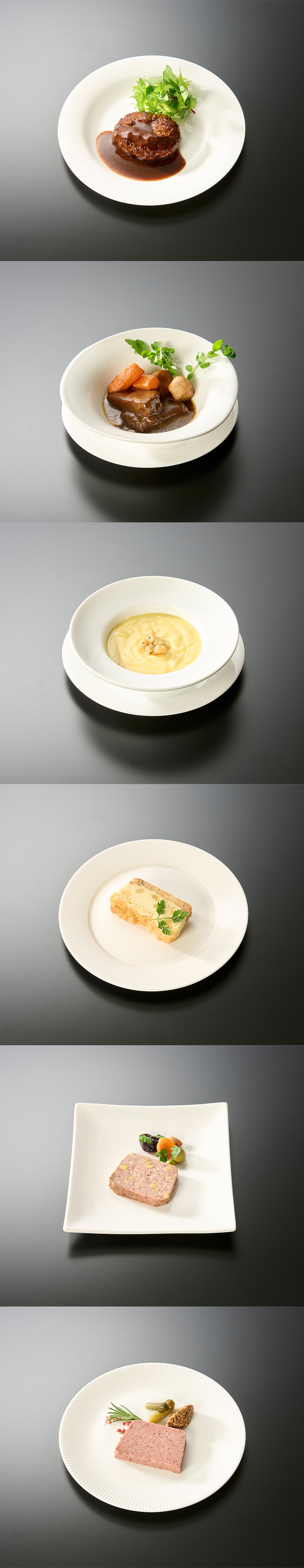 - [冷凍]【6種計6個】銀座ポルトファーロ監修セット(デミグラスハンバーグ/牛ホホ肉シチュー/コーンポタージュ/パテドカンパーニュ/コンビーフ/チーズケーキ)