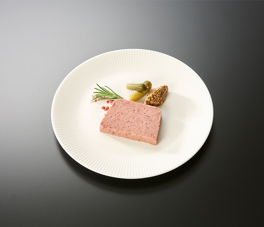 塩漬けもも肉を6時間煮込み、繊維が崩れない様に丁重に手ほぐししました。