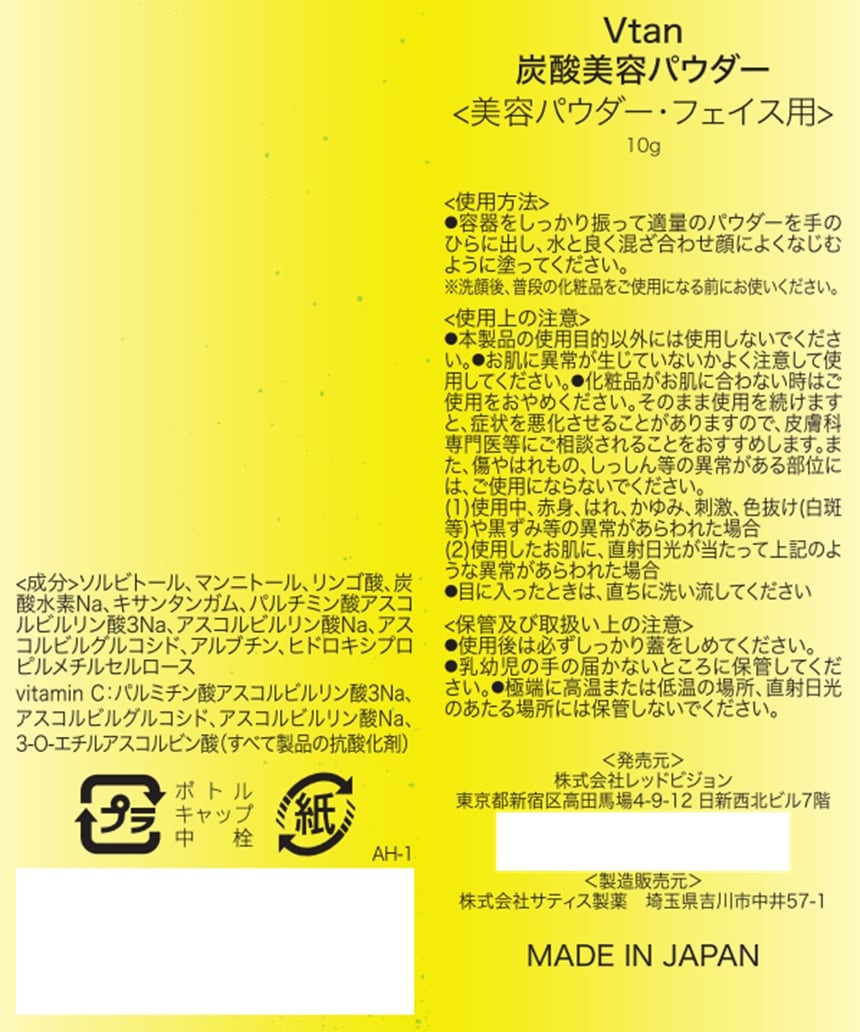 [10個]レッドビジョン Vtan 炭酸美容パウダー 10g | 4種のビタミンC誘導体と炭酸に着目した新スキンケア