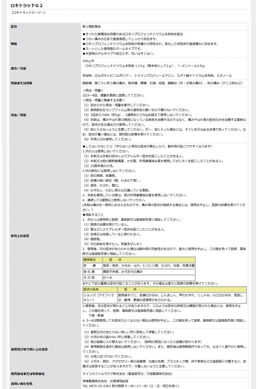 [10本]【第2類医薬品】 テイコクファルマケア ロキトラッドG2 50g | 腰痛、関節痛、筋肉痛などに
