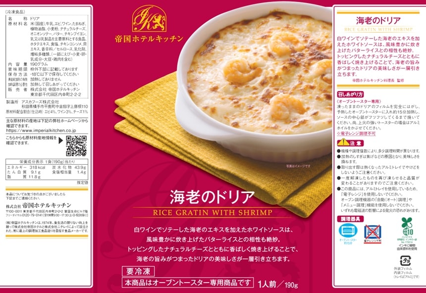- [冷凍]【4種計8食】帝国ホテルキッチン グラタン・ドリアセット(海老のマカロニグラタン/海老のドリア/チキンのペンネグラタン/きのこ香るチキンドリア)