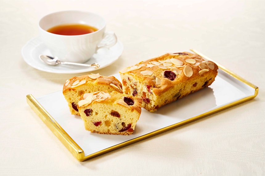 シロップと洋酒にじっくり漬け込んだ色とりどりのドライフルーツを生地に練りこんで焼き上げました。