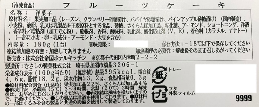 - [冷凍]【3個】帝国ホテルキッチン フルーツケーキ 180g
