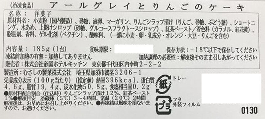 - [冷凍]【3個】帝国ホテルキッチン アールグレイとりんごのケーキ 185g