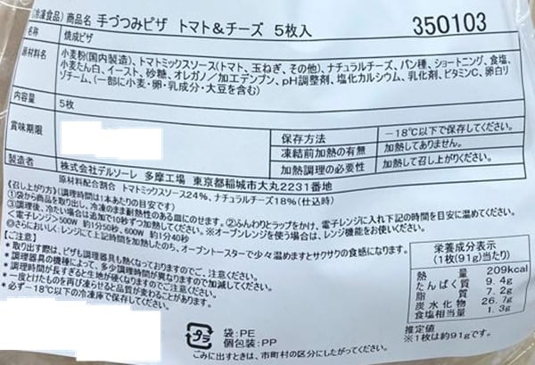 - ・手づつみピザ トマト&チーズ 約91g×5枚入(455g)×2袋
