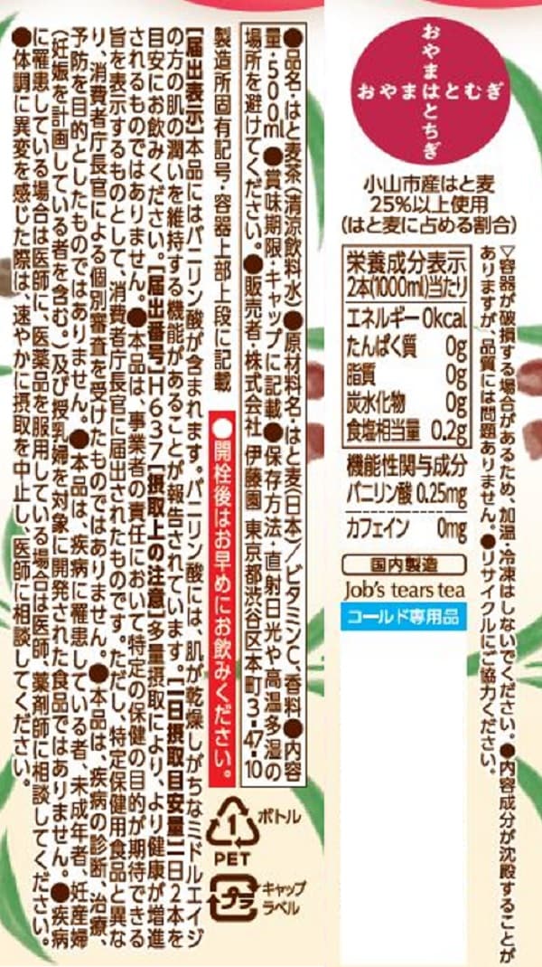 - 【機能性表示食品】 はと麦茶 PET 500ml