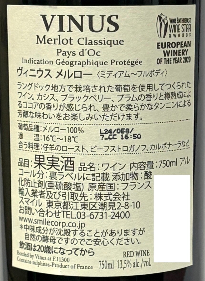・ヴィニウス リザーヴ メルロー 750ml×2本