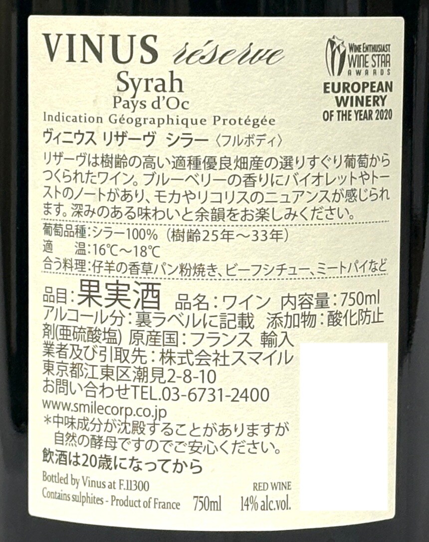 ・ヴィニウス リザーヴ シラー 750ml×2本 - 申込可能個数
