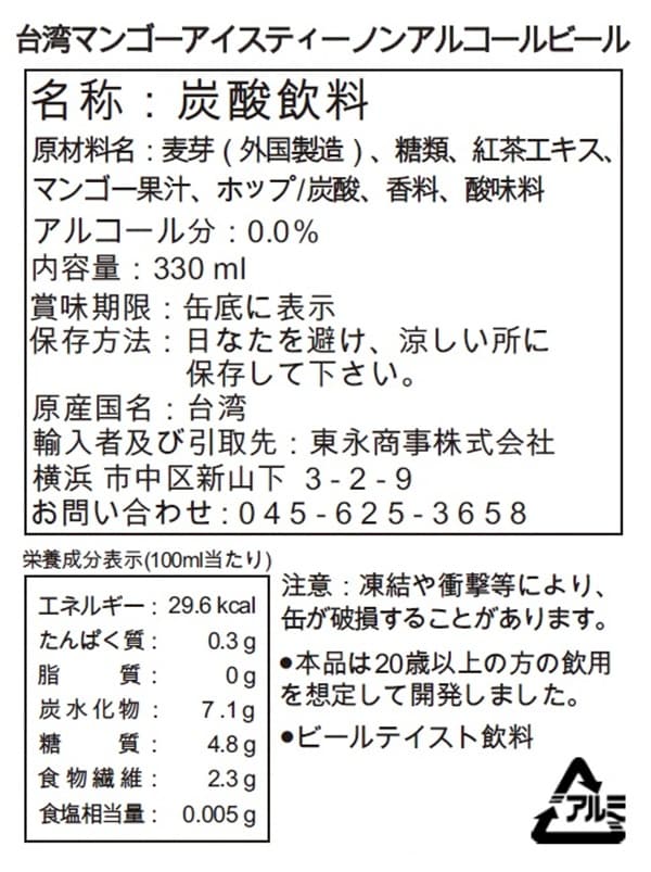 - ・台湾マンゴーアイスティー(ノンアルコールビール) 330ml×24本