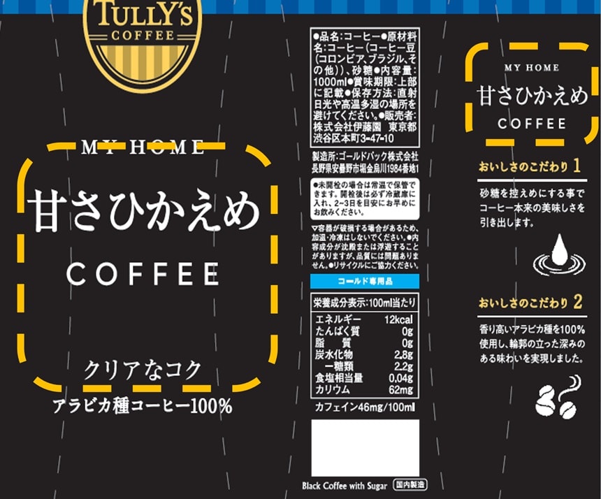 - TULLY'S COFFEE MY HOME 甘さひかえめ COFFEE 紙パック 屋根型キャップ付容器 1000ml