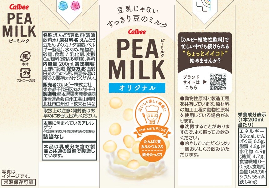 たんぱく質が摂れるえんどう豆たんぱく由来の植物性ミルク「PEAMILK」。