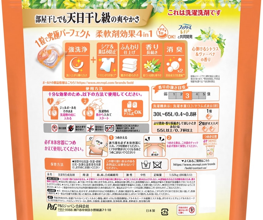 - ボールド ジェルボール4D 心弾けるシトラス&ヴァーベナの香り つめかえテラジャンボサイズ 86個入